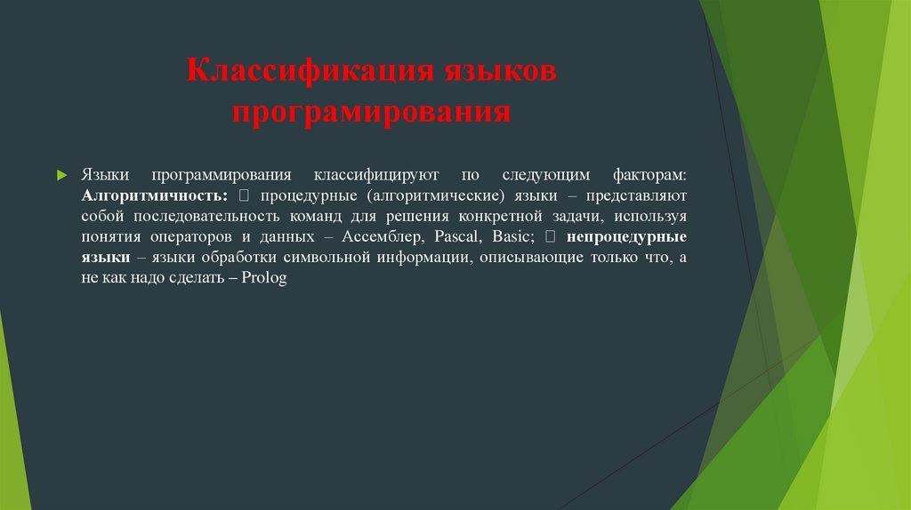 (универсальные) - Pascal, Basic; специализированные языки: ➢ инженерные –