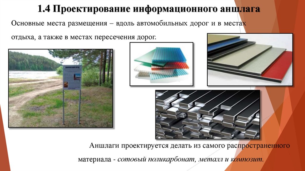 1.4 Проектирование информационного аншлагаОсновные места размещения – вдоль автомобильных дорог и в местах
