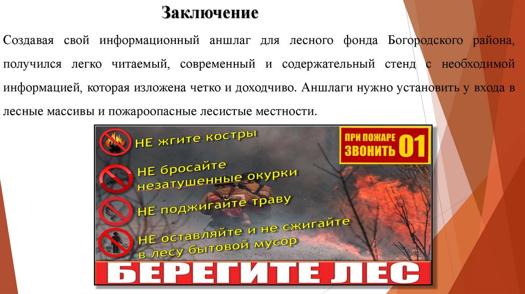 ЗаключениеСоздавая свой информационный аншлаг для лесного фонда Богородского района,