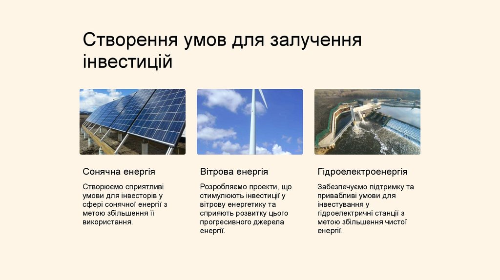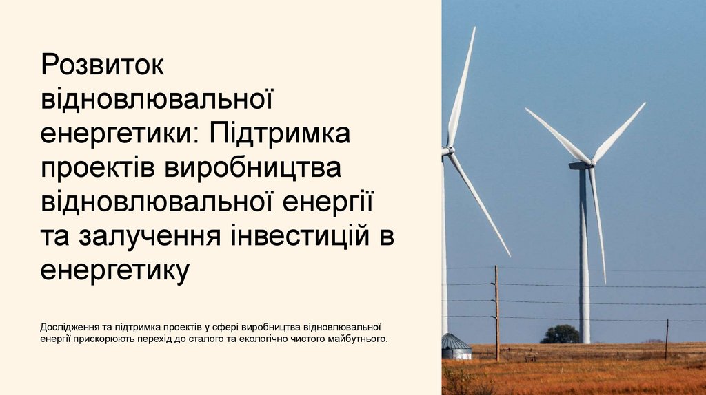 Розвиток відновлювальної енергетики: підтримка проектів виробництва відновлювальної енергії та залучення інвестицій в енергетику