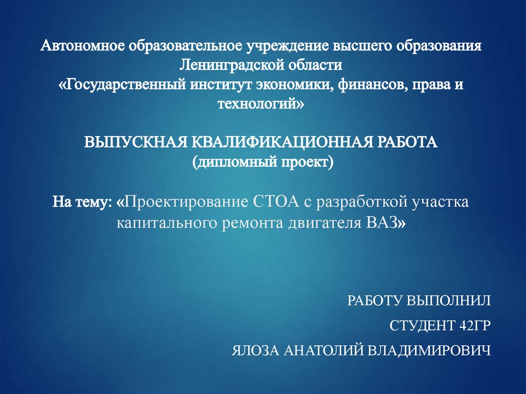Проектирование СТОА с разработкой участкакапитального ремонта двигателя ВАЗ