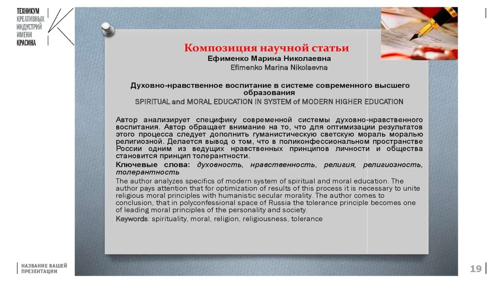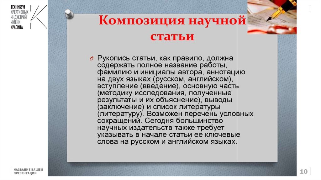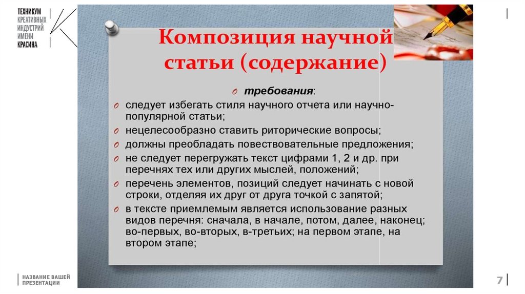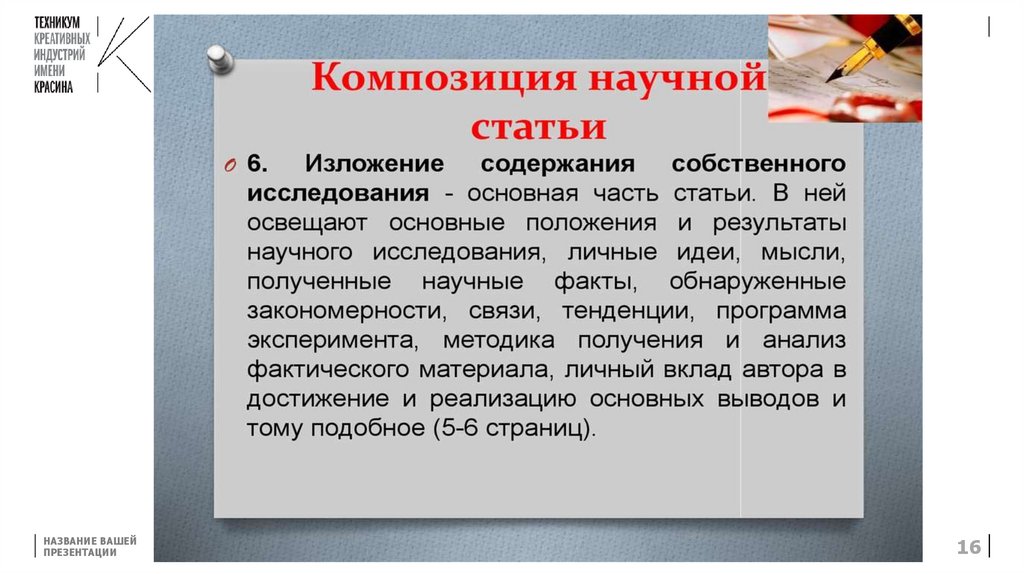 НАУЧНАЯ СТАТЬЯ.СОДЕРЖАНИЕ,