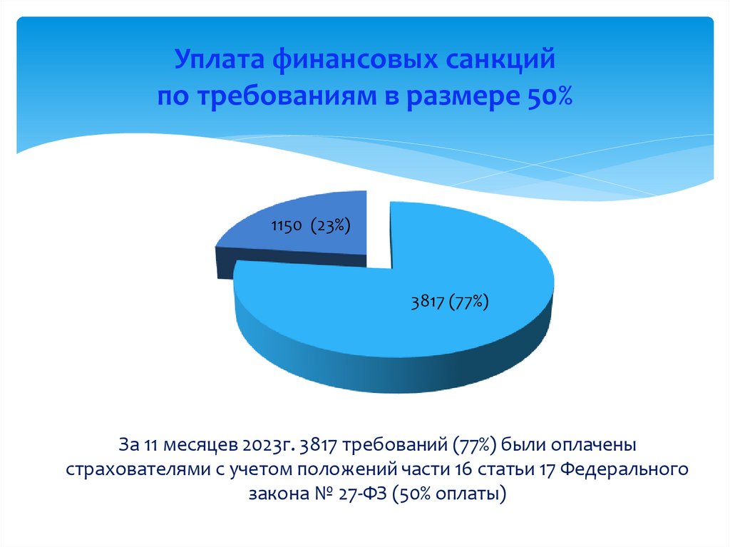 За 11 месяцев 2023г. 3817 требований (77%) были оплачены