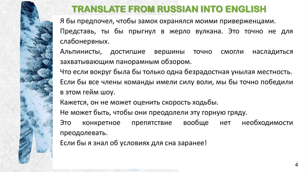 TRANSLATE FROM RUSSIAN INTO ENGLISHЯ бы предпочел, чтобы замок охранялся моими приверженцами.