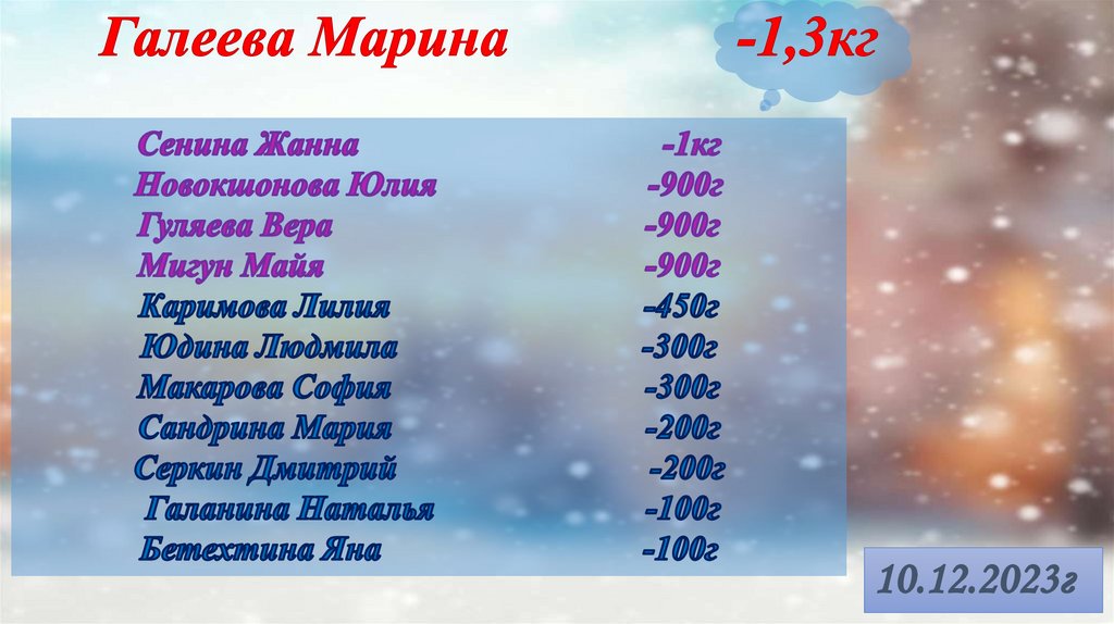 Список недельных отвесов