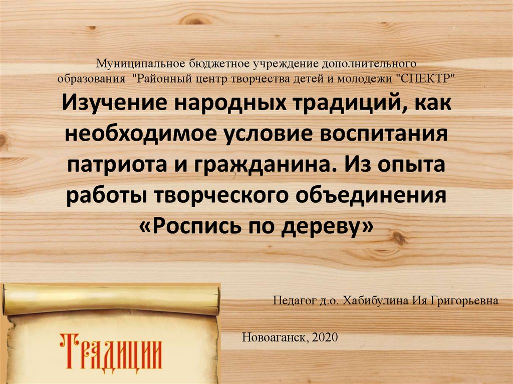 Изучение народных традиций, как необходимое условие воспитания патриота и гражданина