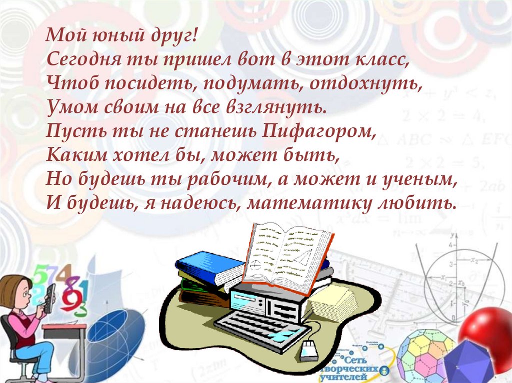 Мой юный друг!Сегодня ты пришел вот в этот класс,