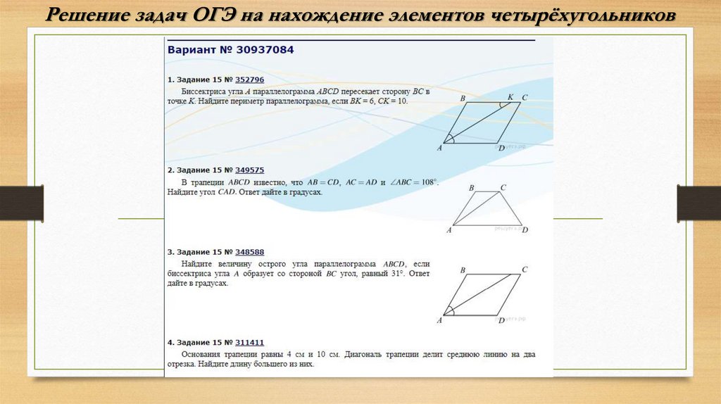 Четырёхугольники. Решение задач ОГЭ на нахождение элементов четырёхугольников