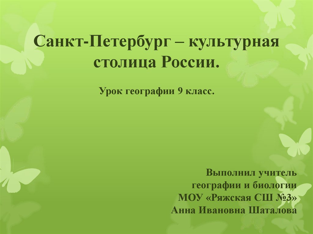 Роль Санкт - Петербурга в экономической, политической и культурной жизни России (9 класс)