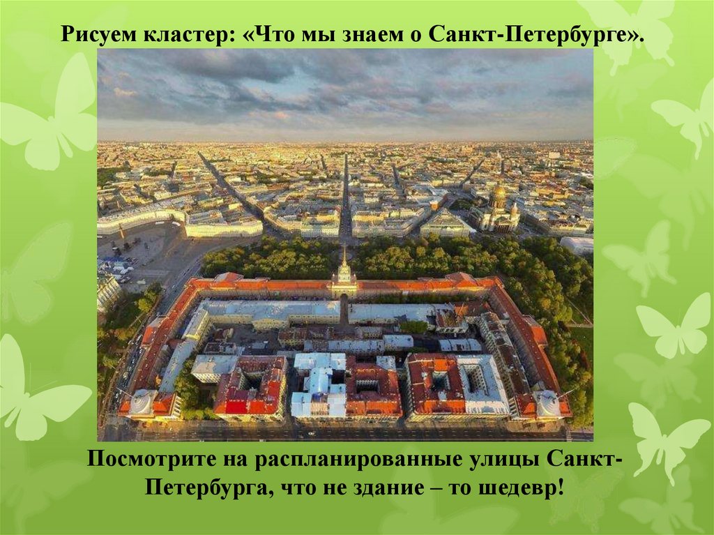 Рисуем кластер: «Что мы знаем о Санкт-Петербурге».Посмотрите на распланированные улицы СанктПетербурга, что не здание – то шедевр!