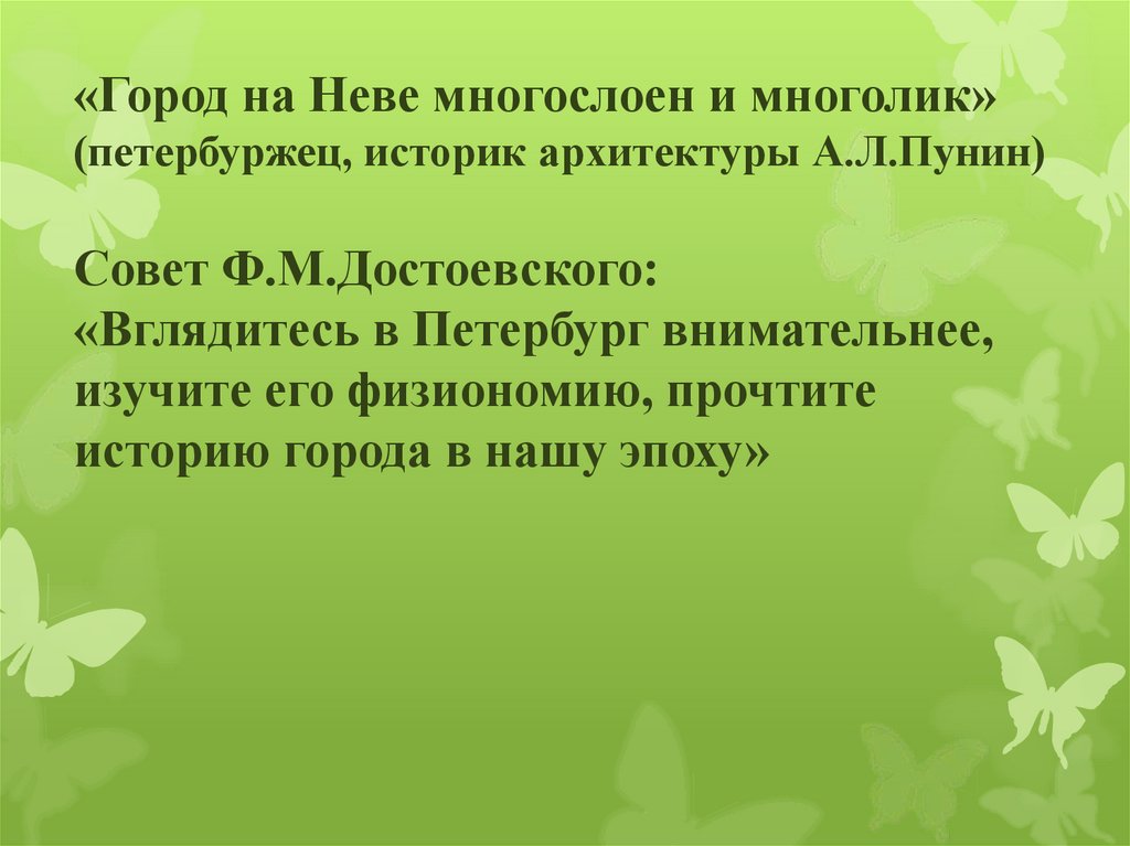 «Город на Неве многослоен и многолик»(петербуржец, историк архитектуры А.Л.Пунин)