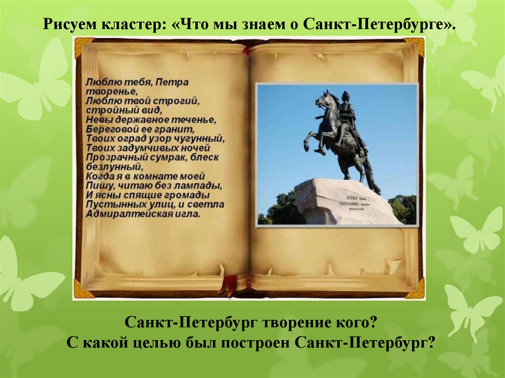 Рисуем кластер: «Что мы знаем о Санкт-Петербурге».Санкт-Петербург творение кого?
