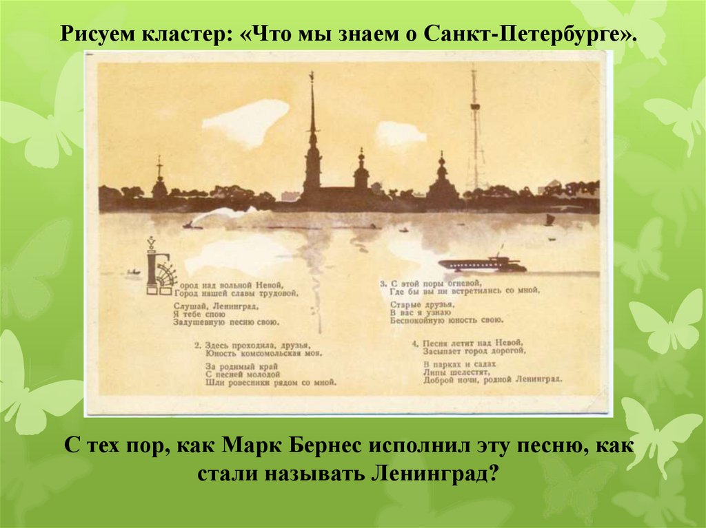 Рисуем кластер: «Что мы знаем о Санкт-Петербурге».С тех пор, как Марк Бернес исполнил эту песню, как