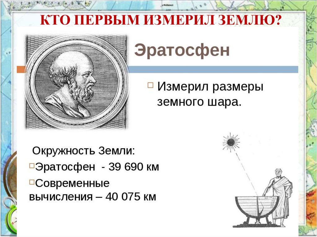 КТО ПЕРВЫМ ИЗМЕРИЛ ЗЕМЛЮ?7.