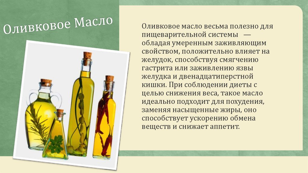 Оливковое масло весьма полезно дляпищеварительной системы —