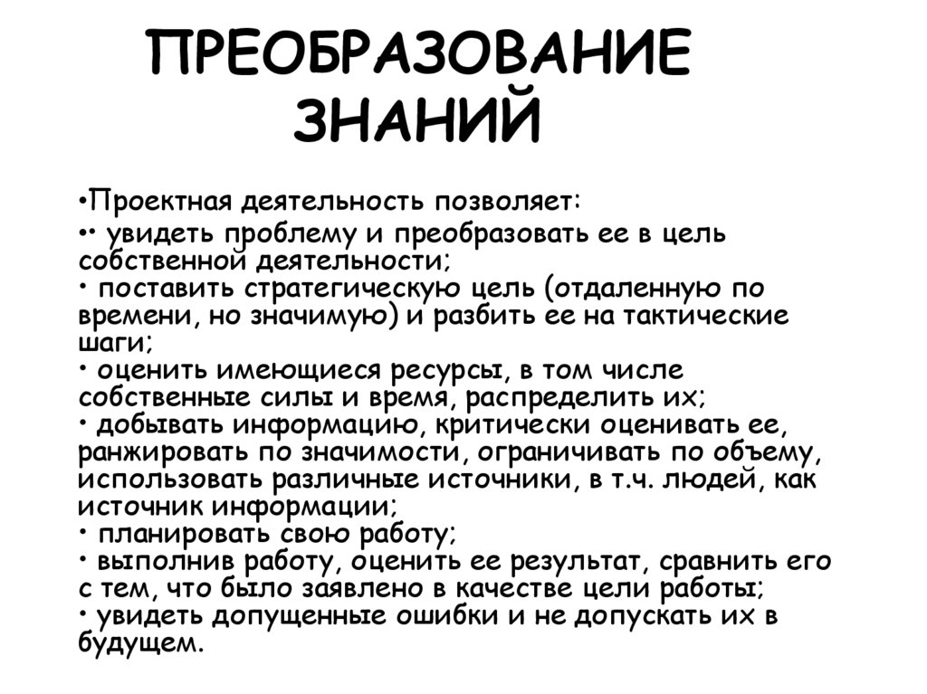 Проектная деятельность. Преобразование знаний