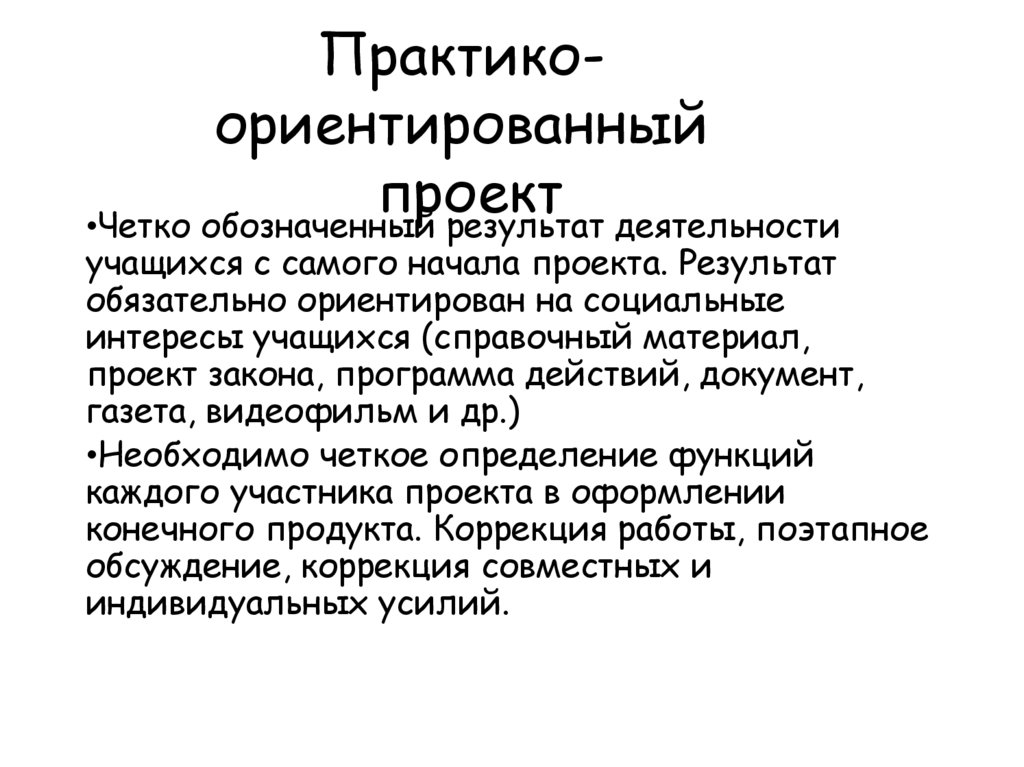 •Четко обозначенный результат деятельности
