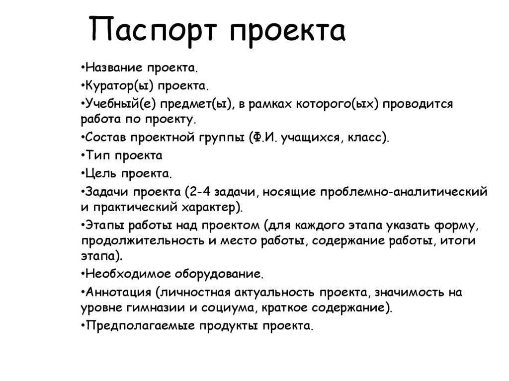• Паспорт проекта