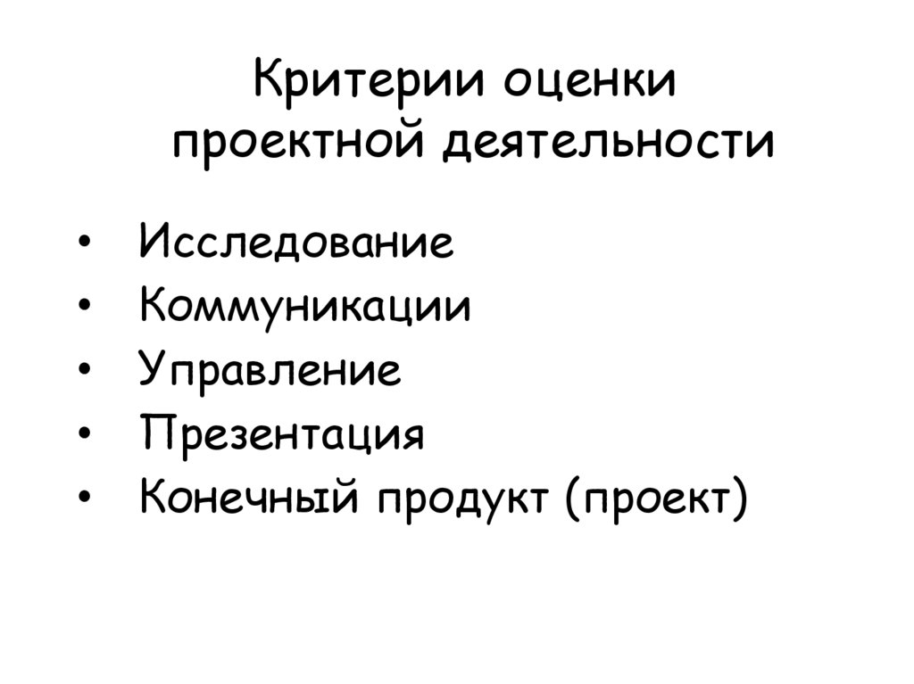 • Критерии оценки проектной