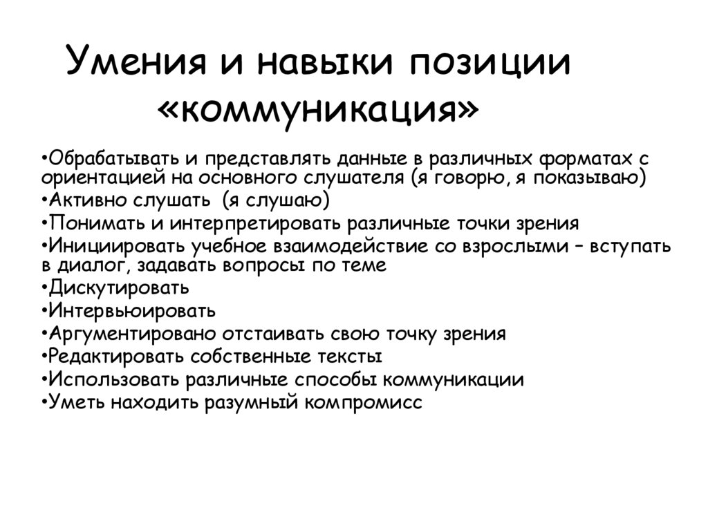 Умения и навыки позиции«коммуникация»