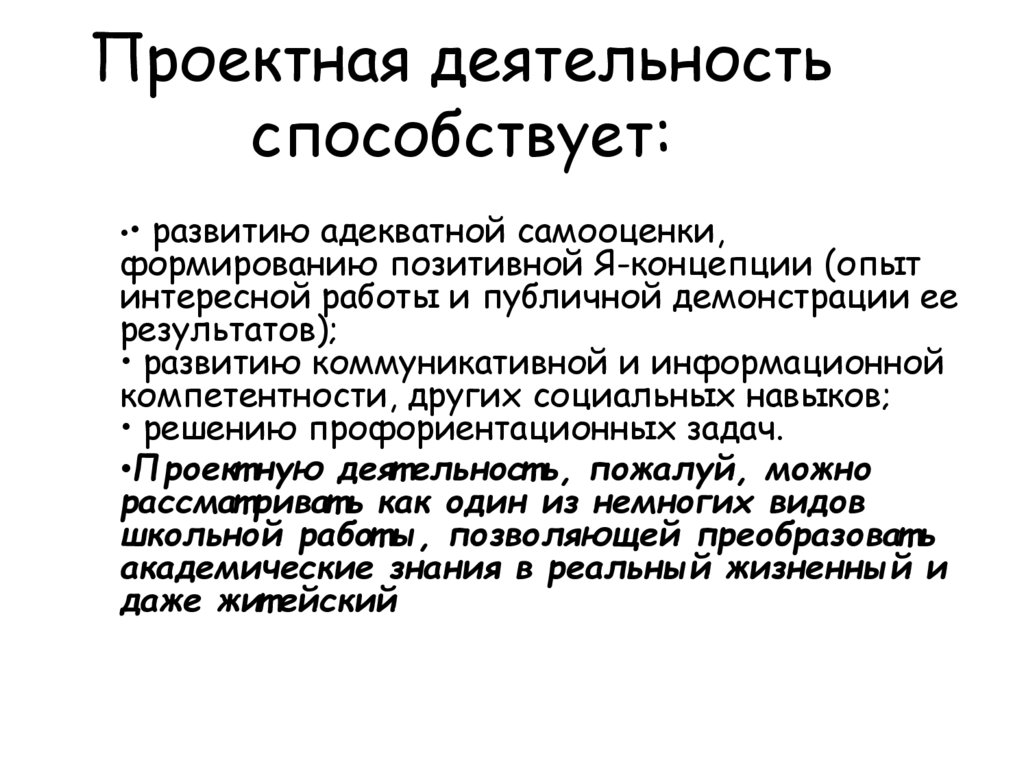 •Проект ную деят ельност ь, пожалуй, можно