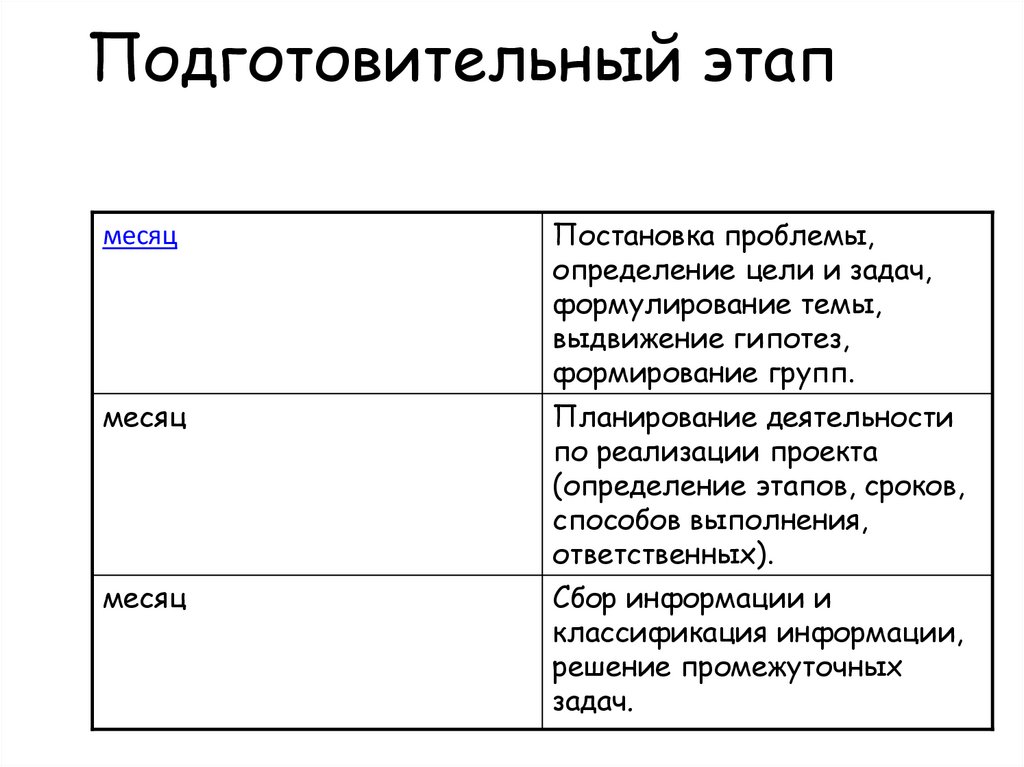 Подготовительный этапмесяц