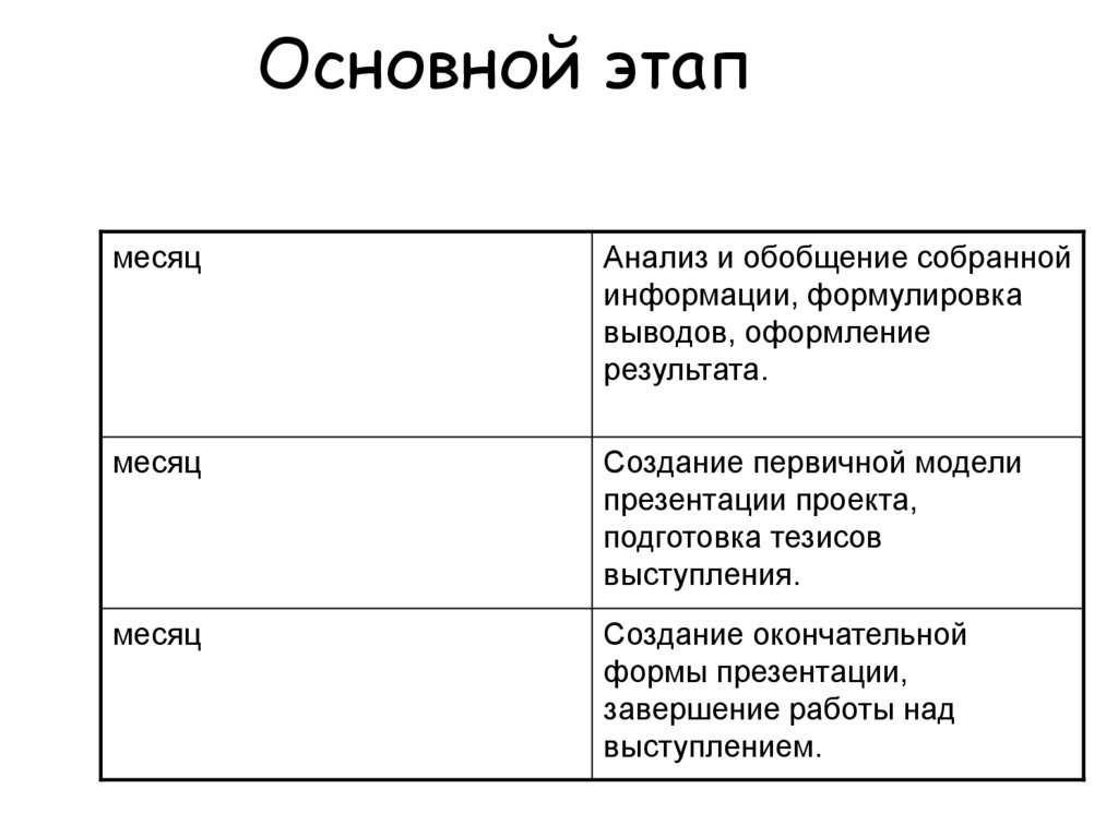 Основной этапмесяц