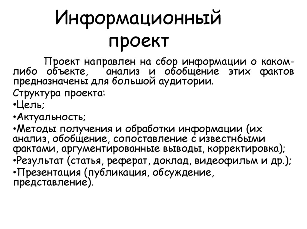 •Задачи проекта (2-4 задачи, носящие проблемно-аналитический