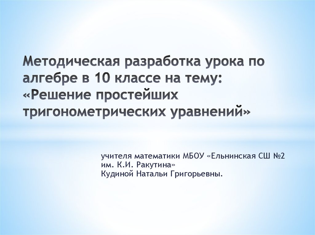 Решение тригонометрических уравнений Простейшие тригонометрические уравнения