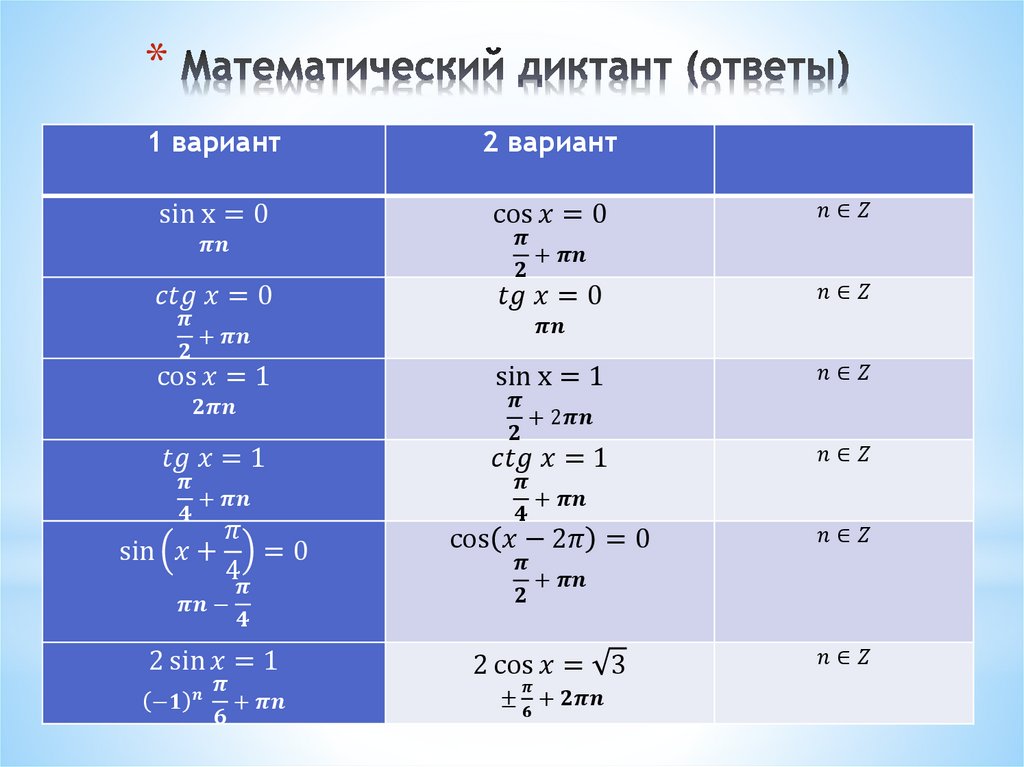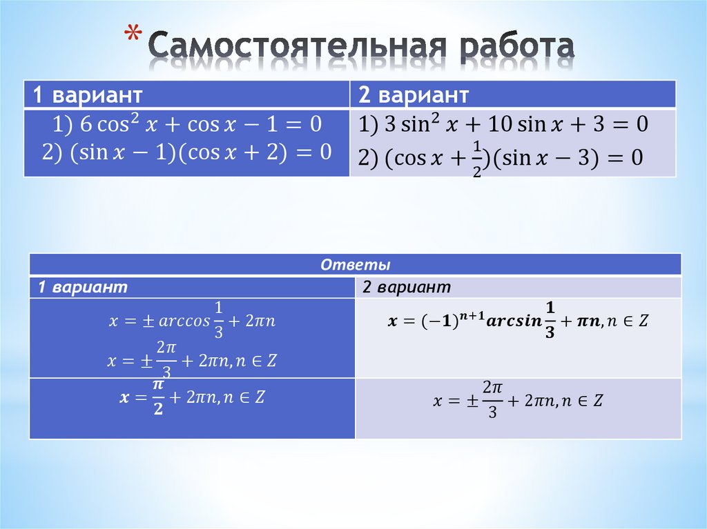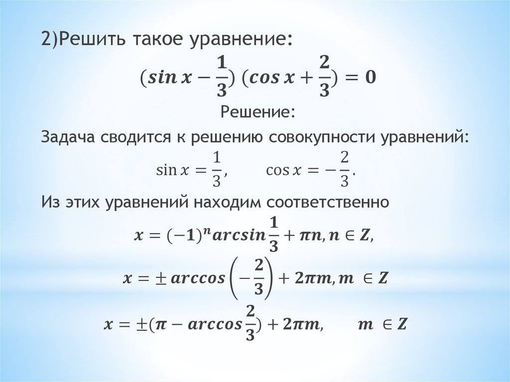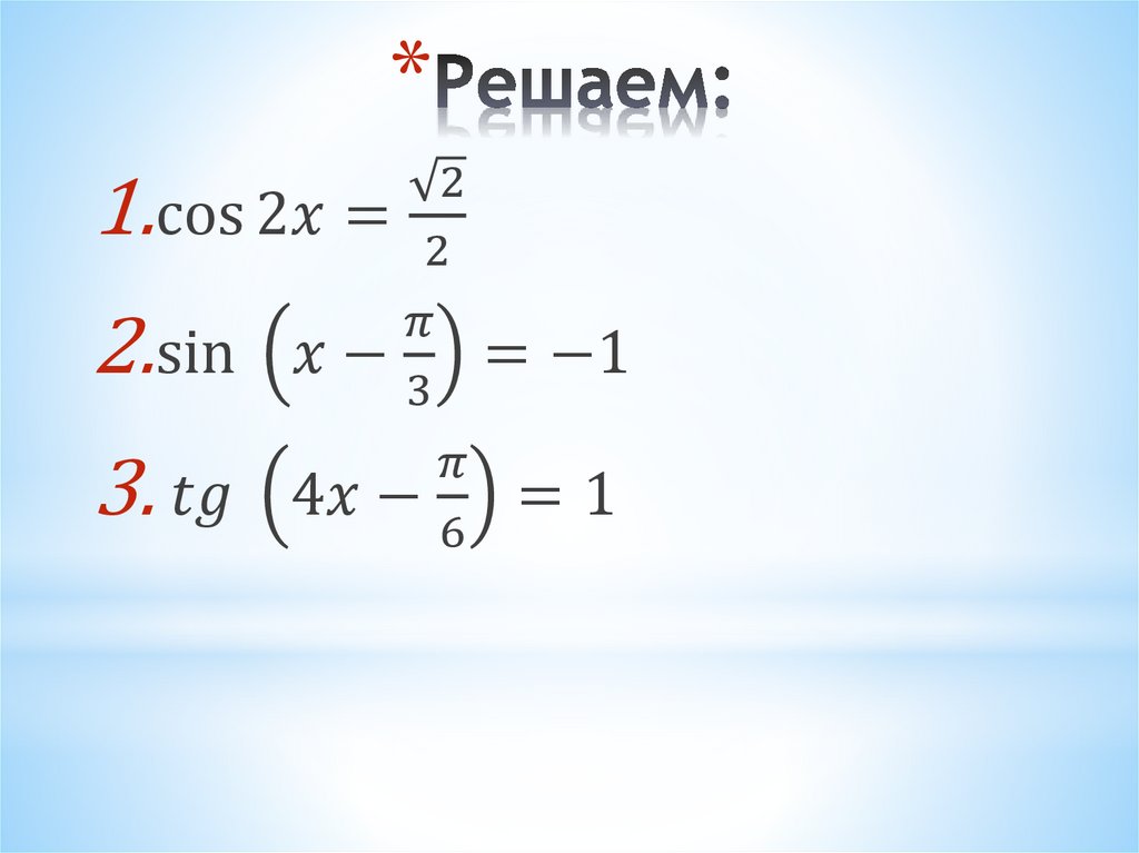 Решение простейших тригонометрических уравнений. Приемы решения простейших тригонометрических уравнений