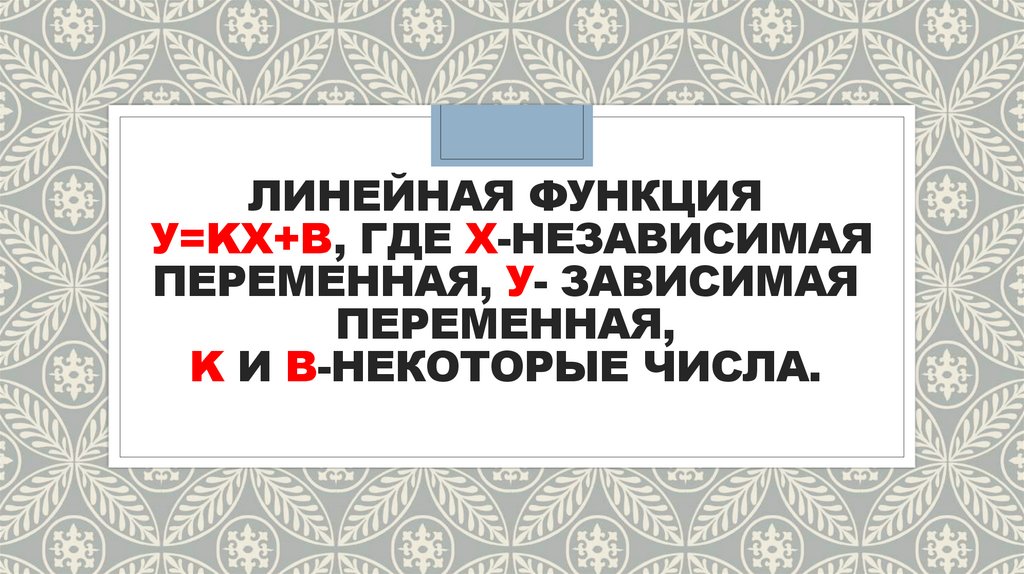 ЛИНЕЙНАЯ ФУНКЦИЯУ=KX+B, ГДЕ Х-НЕЗАВИСИМАЯ