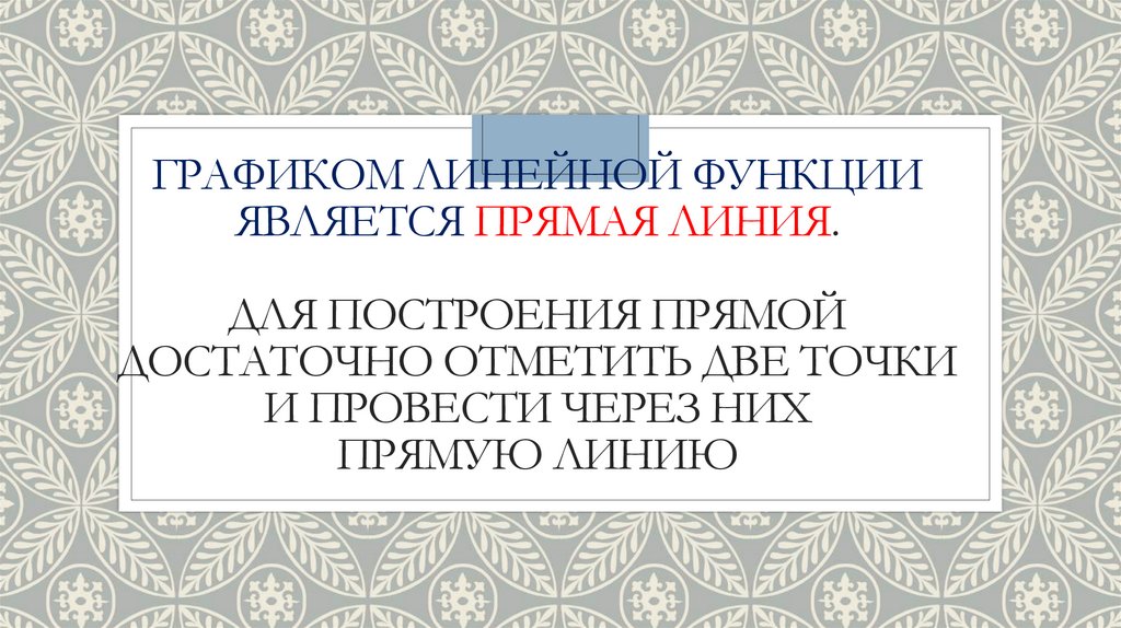 ГРАФИКОМ ЛИНЕЙНОЙ ФУНКЦИИЯВЛЯЕТСЯ ПРЯМАЯ ЛИНИЯ.