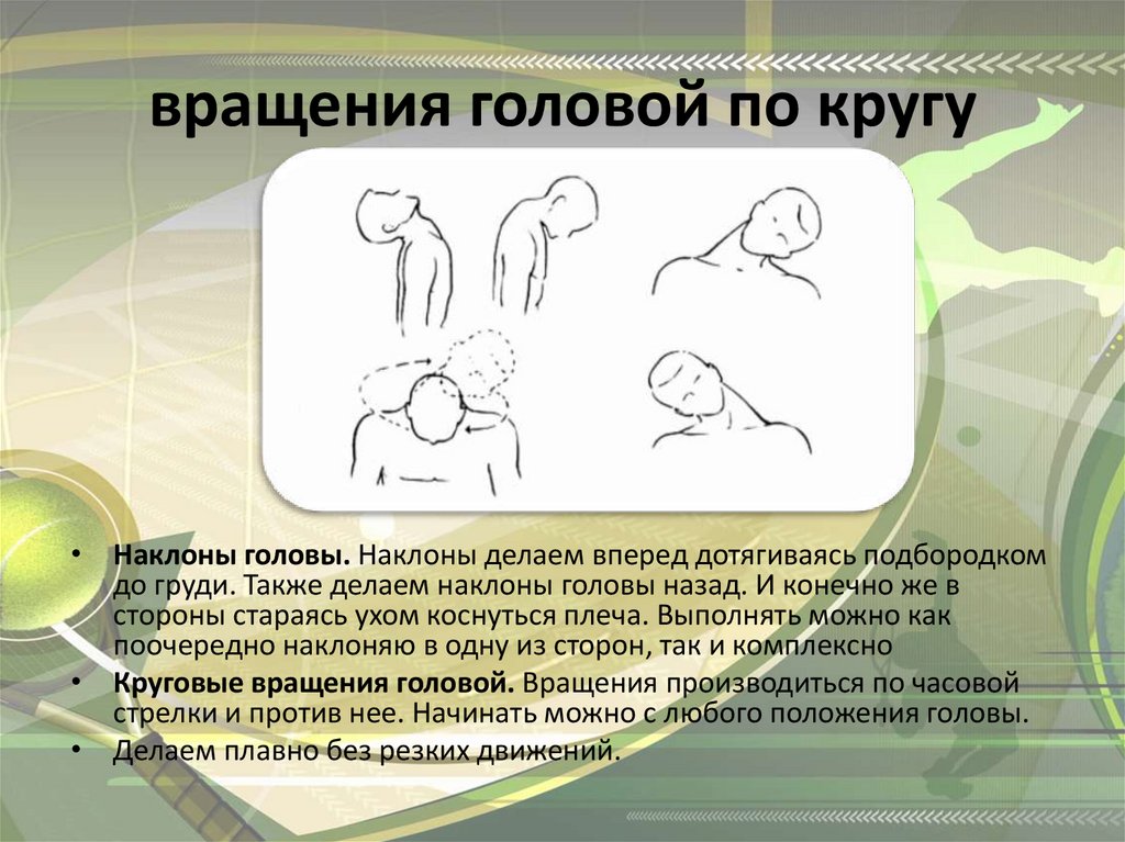 • Круговые вращения головой. Вращения производиться по часовой