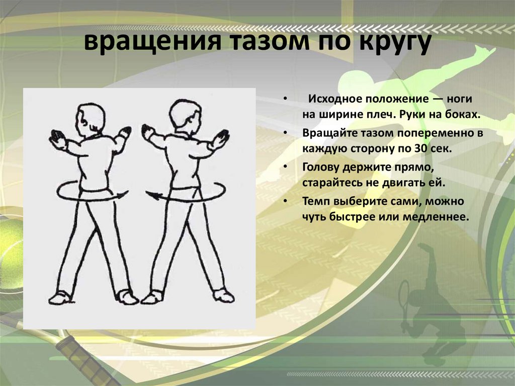 вращения тазом по кругуИсходное положение — ноги