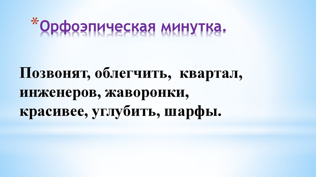 *Орфоэпическая минутка.Позвонят, облегчить, квартал,