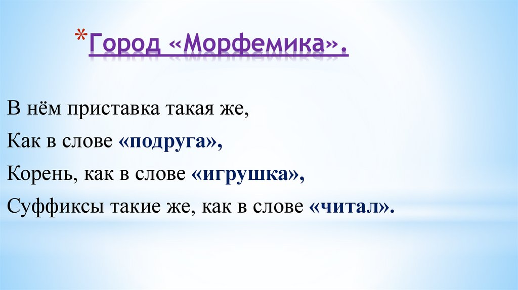 *Город «Морфемика».В списке вы мой обнаружите корень,