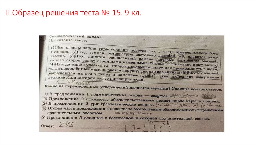 II.Образец решения теста № 15. 9 кл.4.