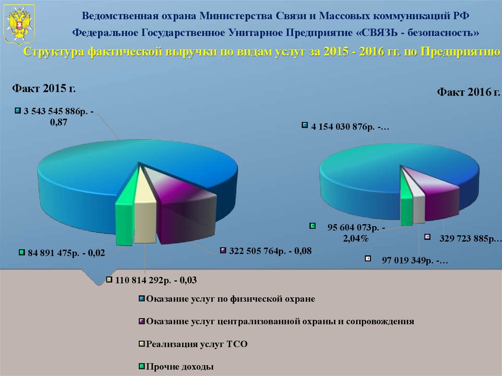 Ведомственная охрана Министерства Связи и Массовых коммуникаций РФ. Структура фактической выручки по видам услуг