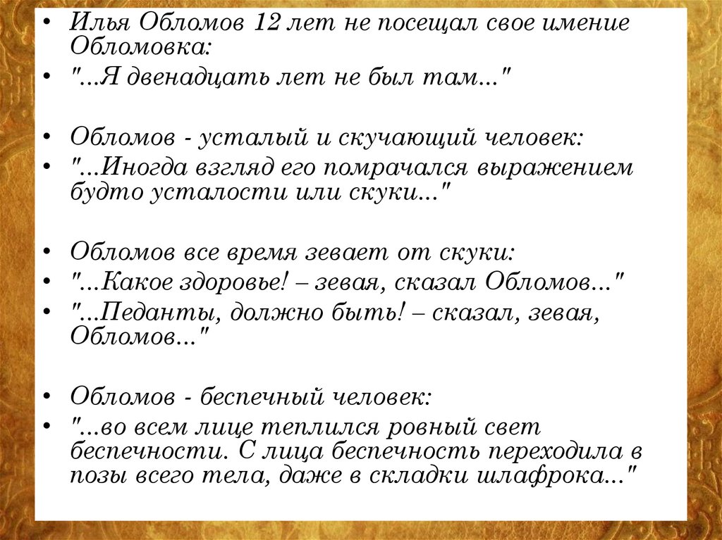 • Обломов любит покой:• "...да в десять мест в один день –