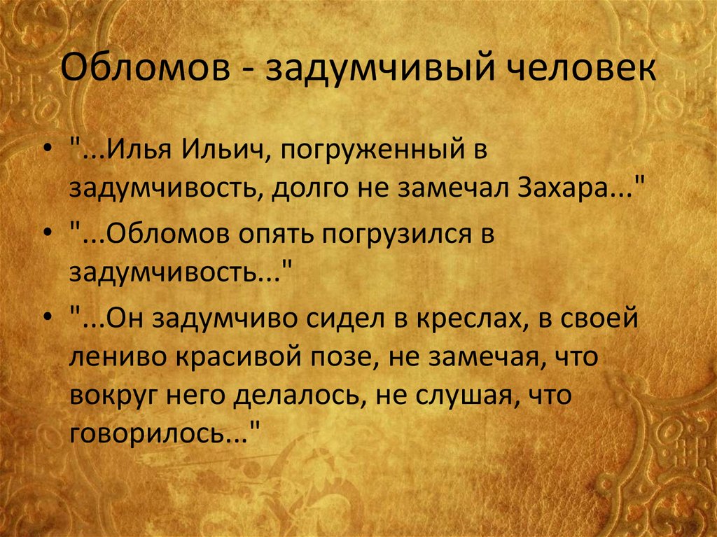 потом вздохнул и задумался..." (Обломов о