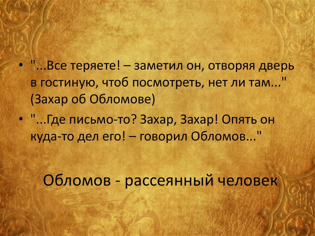 солома!.." (Тарантьев об Обломове)