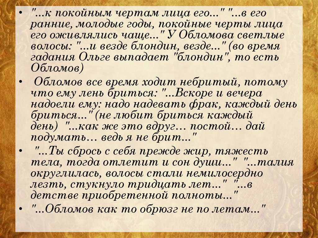 • "...Обломов как то обрюзг не по летам..."