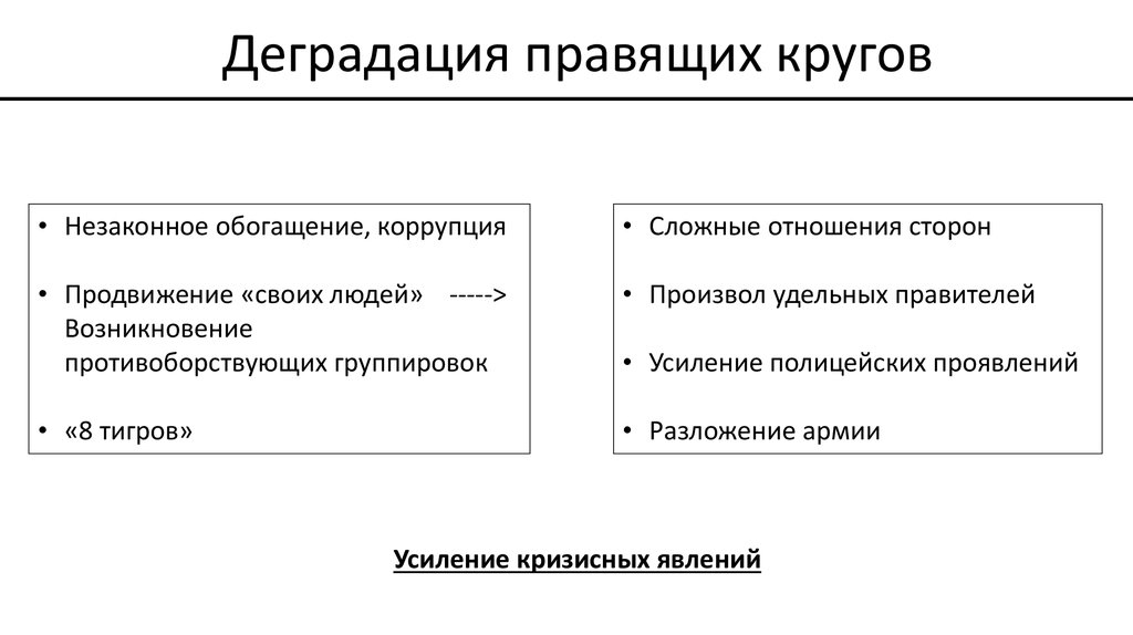 Деградация правящих кругов• Незаконное обогащение, коррупция