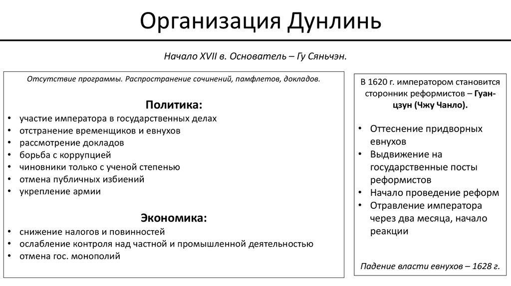 Организация ДунлиньНачало XVII в. Основатель – Гу Сяньчэн.