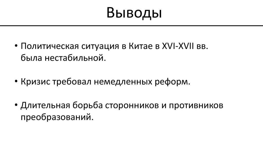 Выводы• Политическая ситуация в Китае в XVI-XVII вв.