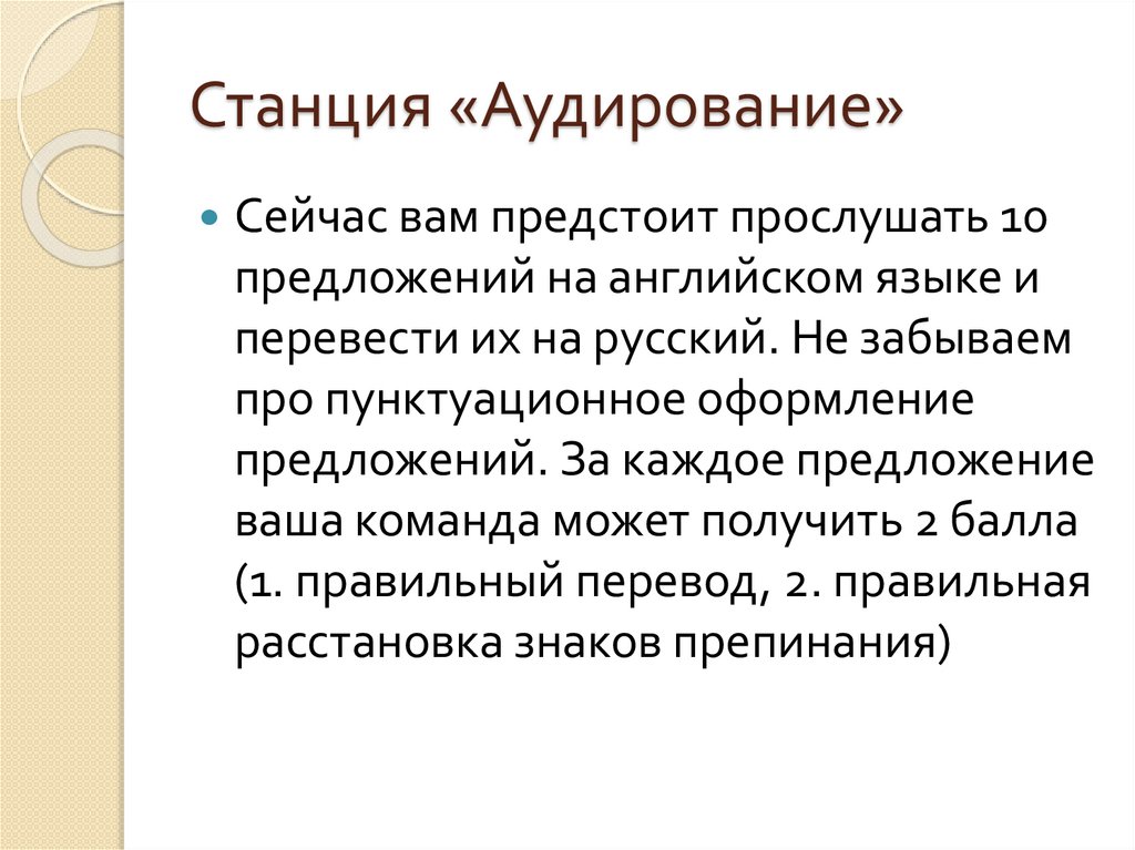 Станция «Аудирование»Сейчас вам предстоит прослушать 10