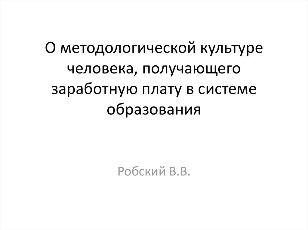 1. О методологической культуре человека, получающего заработную плату в системе образования