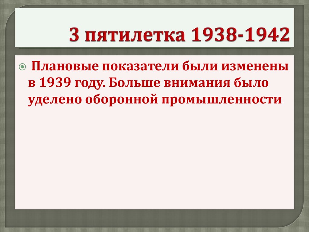 Плановые показатели были измененыв 1939 году. Больше внимания было