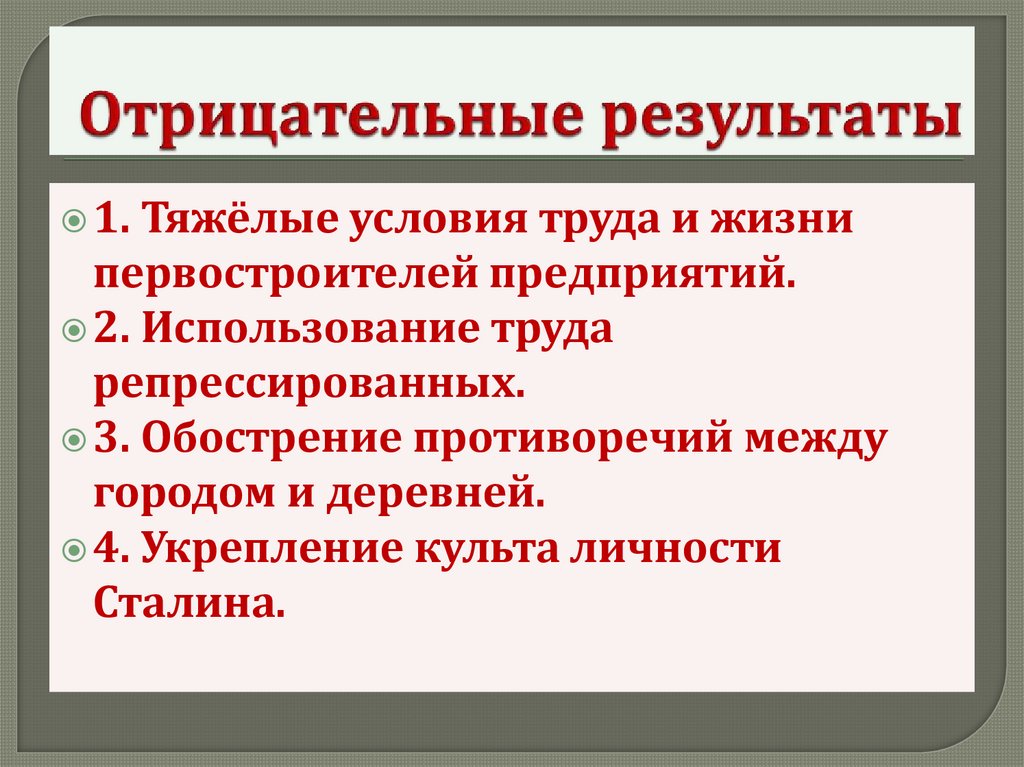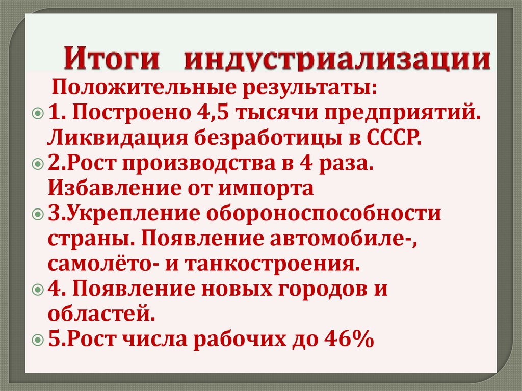 Положительные результаты:1. Построено 4,5 тысячи предприятий.