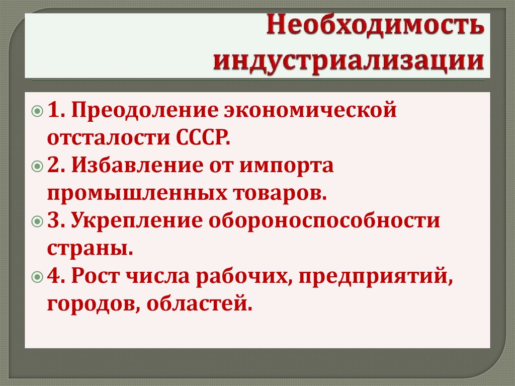 1. Преодоление экономическойотсталости СССР.